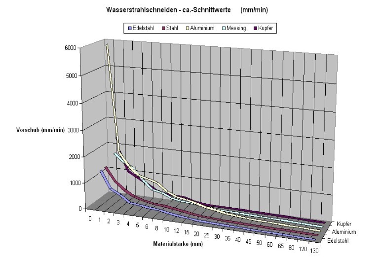 mm erzielen; Funktionsflächen Wasserstrahlschneiden ist ein Trennverfahren, daß in vielen Branchen Anwendung gefunden hat und noch finden wird. Teils als Konkurrenz zu etablierten Trennverfahren wie dem Messer im Bereich weicher Werkstoffe wie Lebensmttel, Textilien, Kunststoffen und bei harten Werkstoffen gegen Sägen, Scheren und thermischen Trennverfahren.